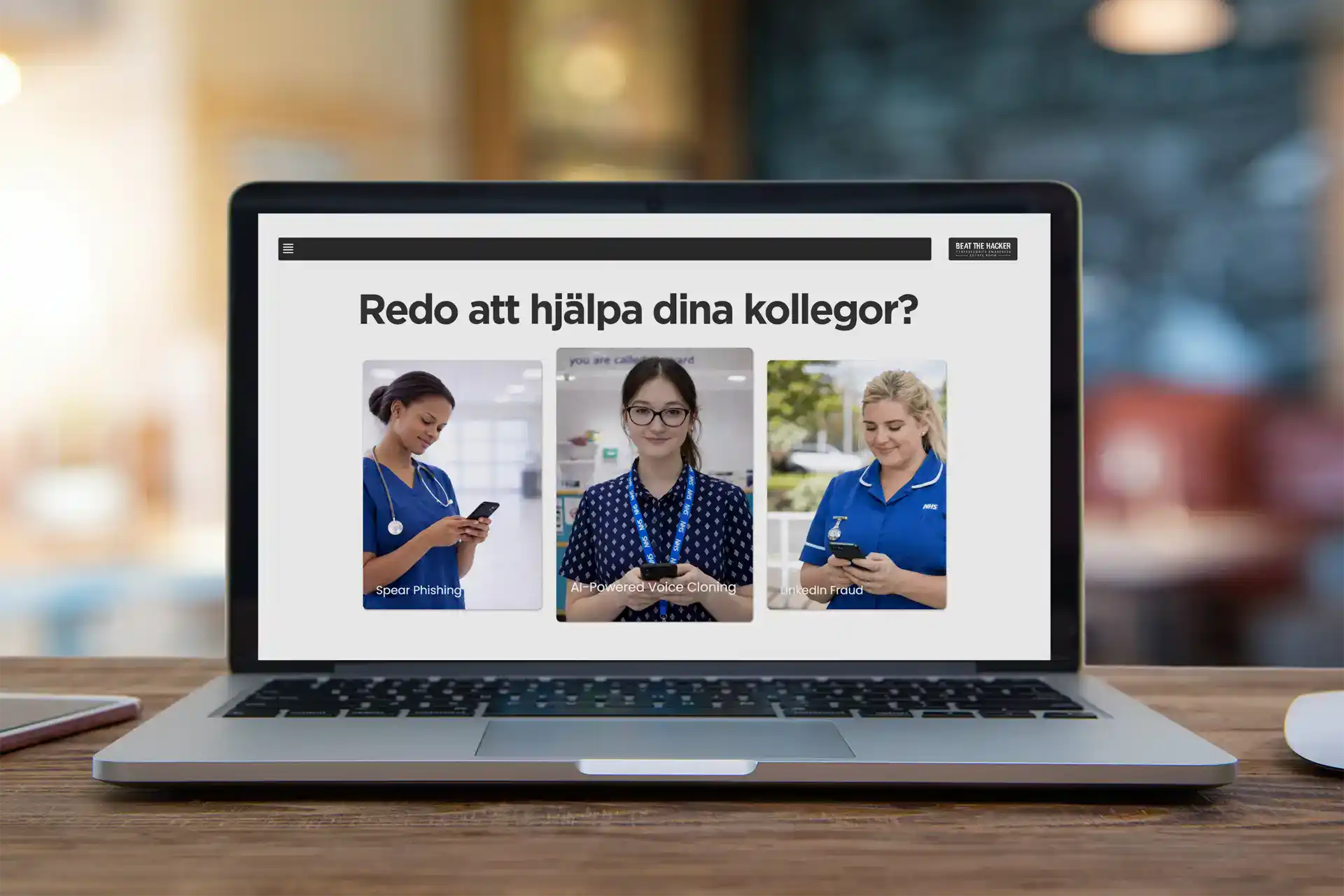 Vår cyberträning är designad för vårdpersonal, med bildspråk och scenarier som de anställda känner igen sig i.